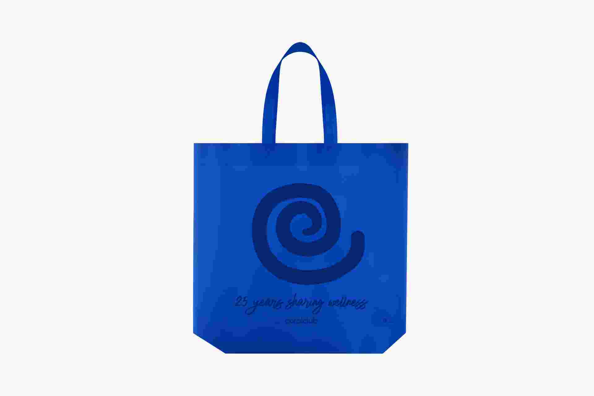 Sturdy reusable spunbond bag with long handles.